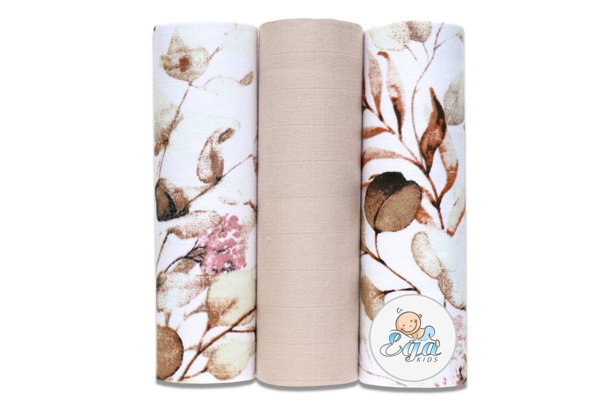 Sada měkkých a vzdušných mušelínových plen. Každá sada obsahuje 3 mušelínové plenky. Sada je balena v průhledné fólii. Mušelínové plenky jsou nezbytné v prvních měsících života dítěte.
