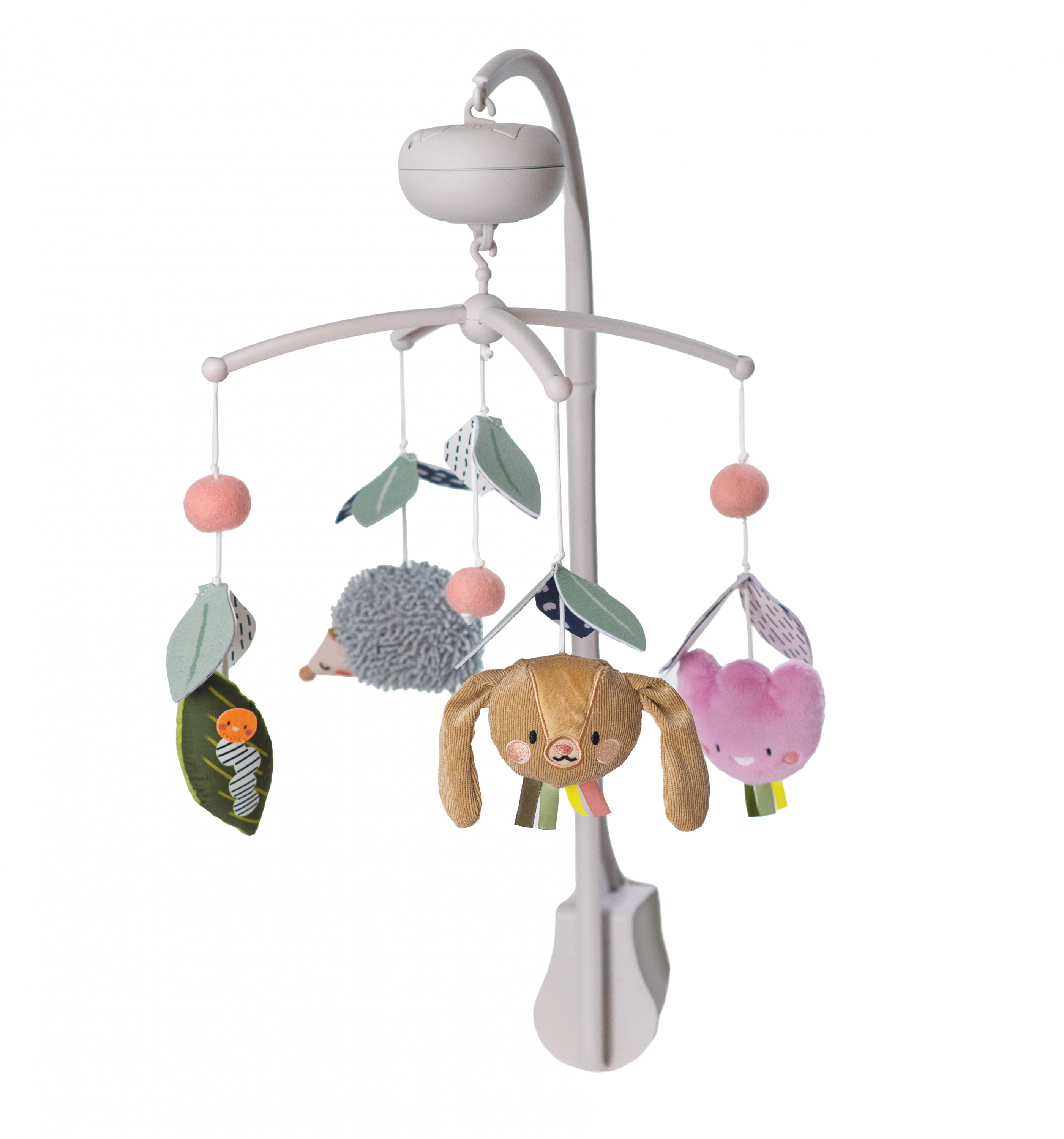 Hudební kolotoč Taf Toys nabízí kombinaci pohybu a klasických melodií (Mozart, Schuman, Bach, Field a Čajkovský) v úpravě pro malé děti a celkové délce 30 minut. Pozornost dítěte upoutají roztomilé otáčející se plyšové hračky v jemných, pastelových barvách. Kolotoč dítě uklidňuje a pomáhá rozvíjet jeho smysly, poznávací dovednosti a emoční inteligenci.